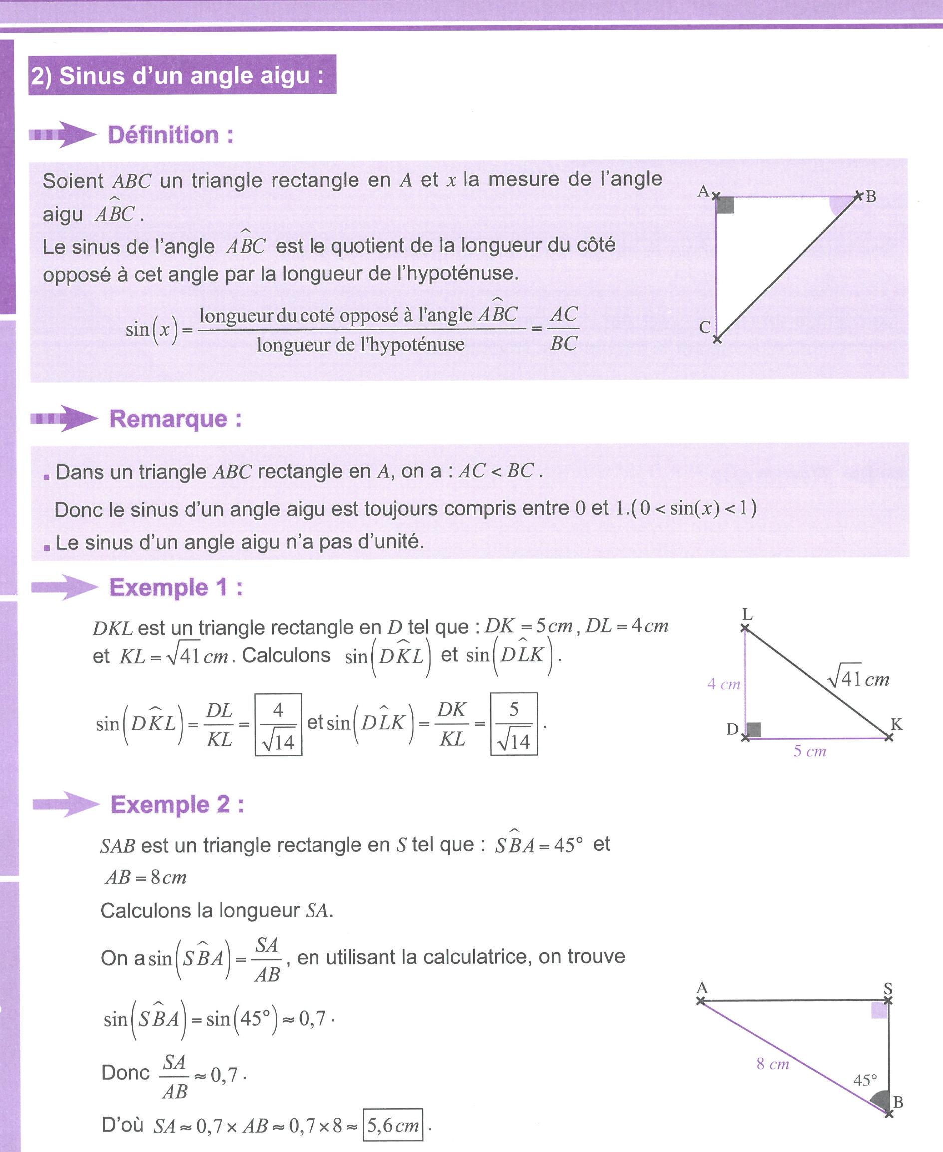 2) Sinus d'un angle aigu :
