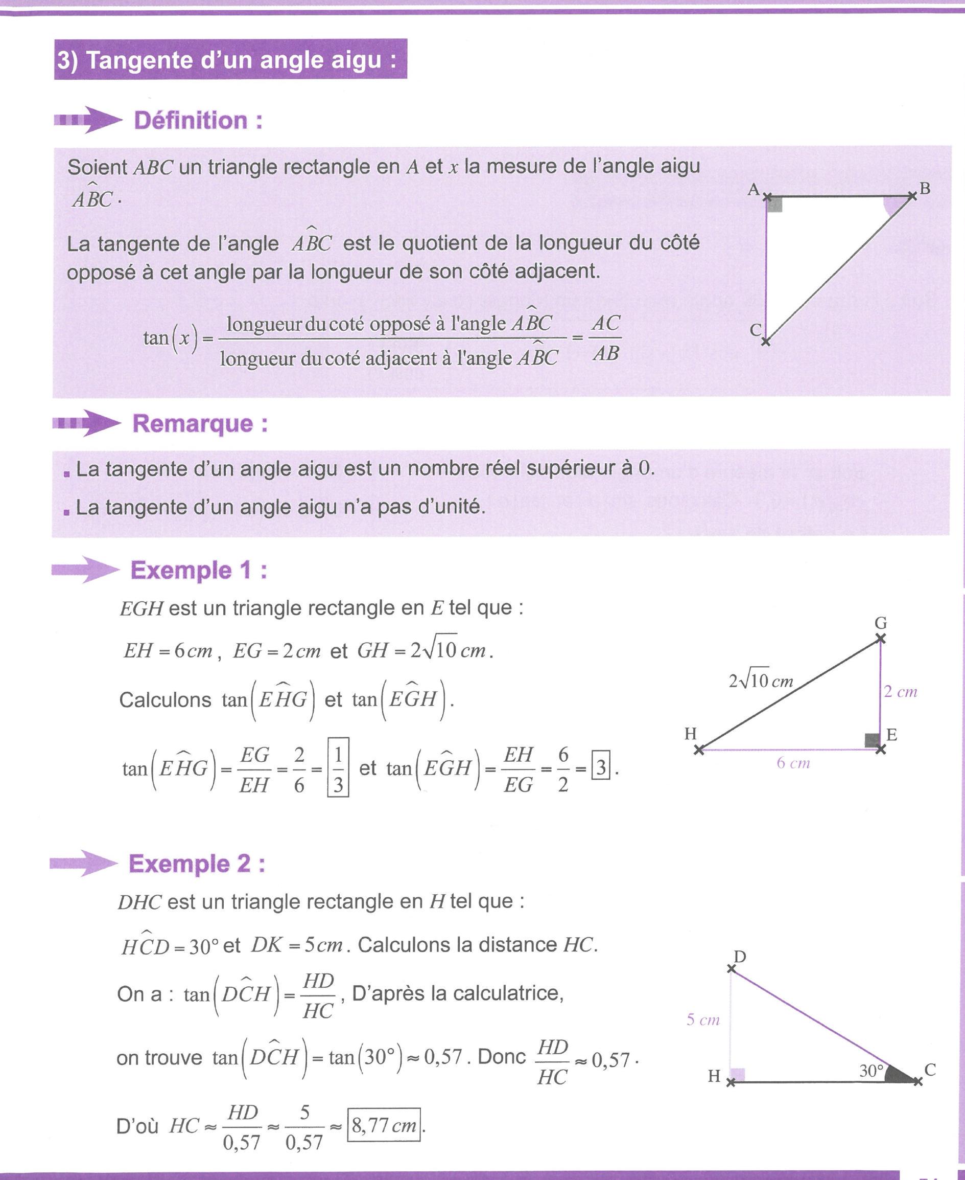 3) Tangente d'un angle aigu :